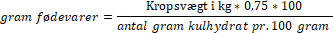 Formlen til udregning af madmængde:.